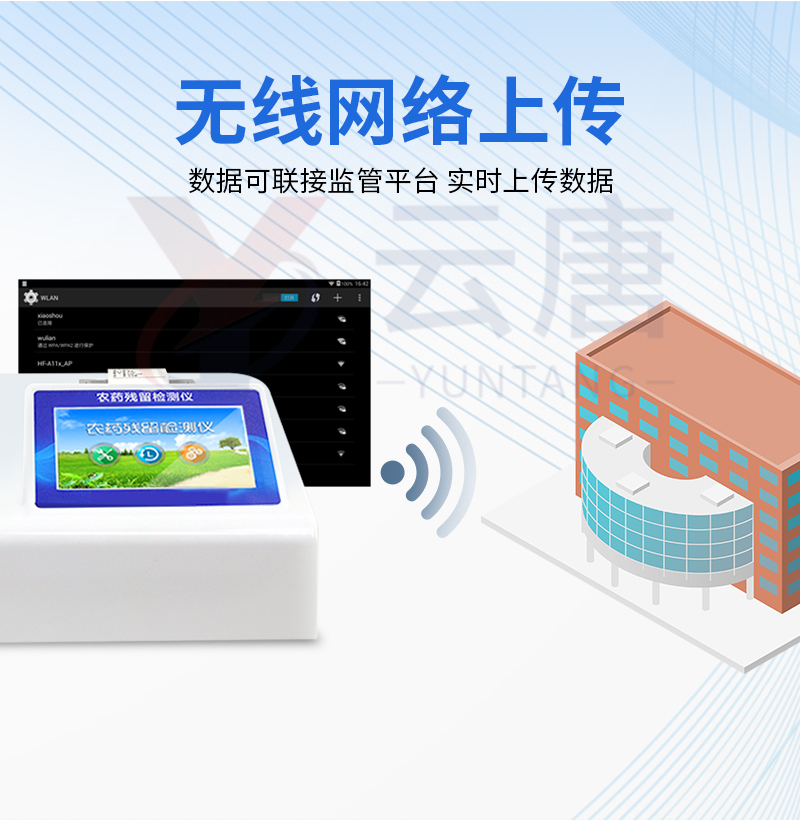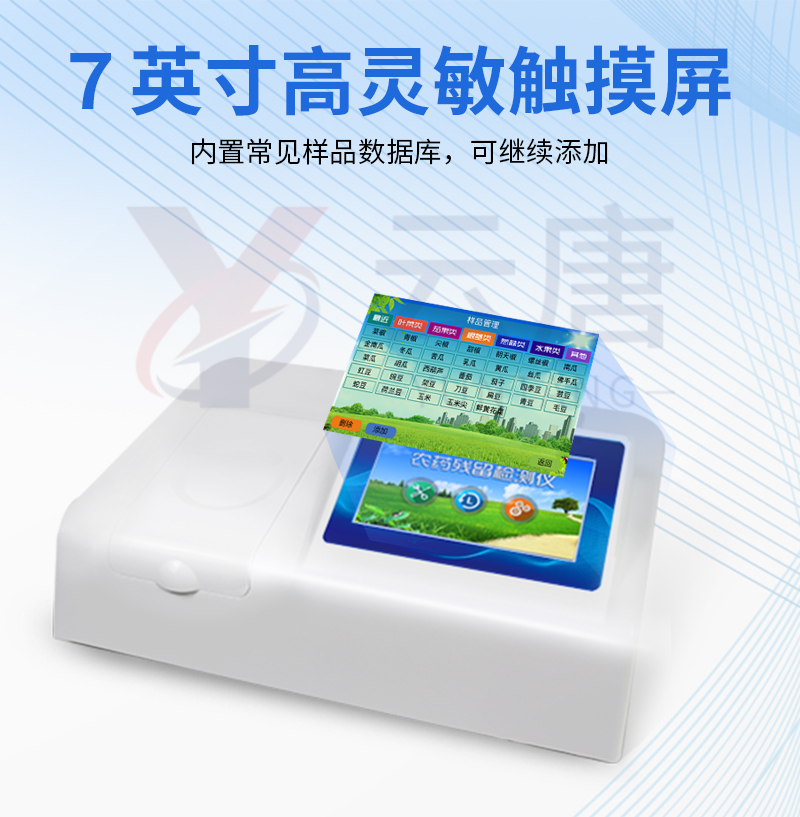 | 乙酰胆碱酯酶和丁酰胆碱酯酶试剂均可以使用,符合国家标准和农业部标准的要求。 | 自动判断样品是否合格,检测结果更加直观。 | 仪器具有100多种蔬菜名称菜单库,分类管理,并可按需添加或删除蔬菜名,编辑蔬菜名称,可直接打印出蔬菜名称。 | 检测通道:10个检测通道,可以同时测试多个样品,循环检测,即放即检,每个样品由程序控制分别独立工作,不会互相干扰。 | 智能操作系统,采用更加人性化操作,主控采用多核处理器,主频1.88Ghz,运转速度更快速,稳定性更强。 | 显示方式:7英寸高灵敏真彩触摸屏显示,人性化中文操作界面,读数直观、简单。 | 打印机采用串口5v打印,可选择手动打印或者自动打印,三分钟出打印结果,打印格式为检测人姓名、吸光度差值、检测时间、检测机构、样品名称及结果判定。 | 光源采用进口超高亮发光二极管,具有低功耗、高精度、稳定性强、光源可控可以关掉不使用的光源,响应速度快等优点。 | 智能恒流稳压,光强自动校准,长时间连续工作光源无温漂现象。 | 仪器具有GPRS远传功能,可插手机卡实现数据远传平台,wifi联网功能,可将数据快速上传电脑,进行数据管理与统计。 | 采用USB2.0接口设计,方便数据的存贮和移动,并可随时与计算机直接相连,并且可用计算机控制仪器。实现数据查询、浏览、分析、统计、打印等。 | 智能化程度高,仪器具有自检功能:具有开机自检和调零功能,具有自动检测重复性功能 | 仪器具有自身保护功能,可设置用户名及密码,防止非工作人员操作等。 | 采用DC12v直流供电,安全系统更高,并且配备6A锂电池充电器。 | 仪器具有重新校准、锁定、恢复出厂设置功能。 |