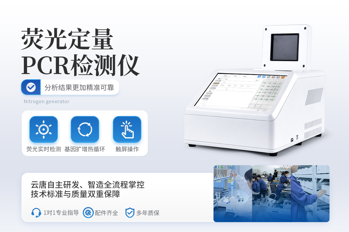 YT-P08型号 实时荧光定量PCR仪器的原理:聚合酶链式反应(polymerase chain reaction,PCR)是一种用于放大扩增特定的DNA片段的分子生物学技术,它可看作是生物体外的特殊DNA扩增,由高温变性、低温退火及适温延伸等几步反应组成一个温度循环周期,使目的基因得以迅速扩增,具有特异性强、灵敏度高、操作简便、省时等特点,是基因扩增技术的一次重大革新。PCR技术可将极微量的目标DNA特异地扩增上百万倍,从而大大提高对DNA分子的分析和检测能力。