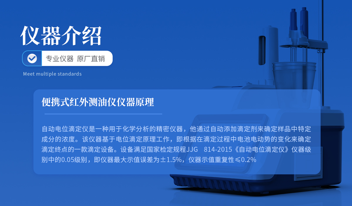 自动电位滴定仪是一种用于化学分析的精密仪器,他通过自动添加滴定剂来确定样品中特定成分的浓度。该仪器基于电位滴定原理工作,即根据在滴定过程中电池电动势的变化来确定滴定终点的一款滴定设备。设备满足国家检定规程JJG 814-2015《自动电位滴定仪》仪器级别中的0.05级别,即仪器**示值误差为±1.5%,仪器示值重复性≤0.2%