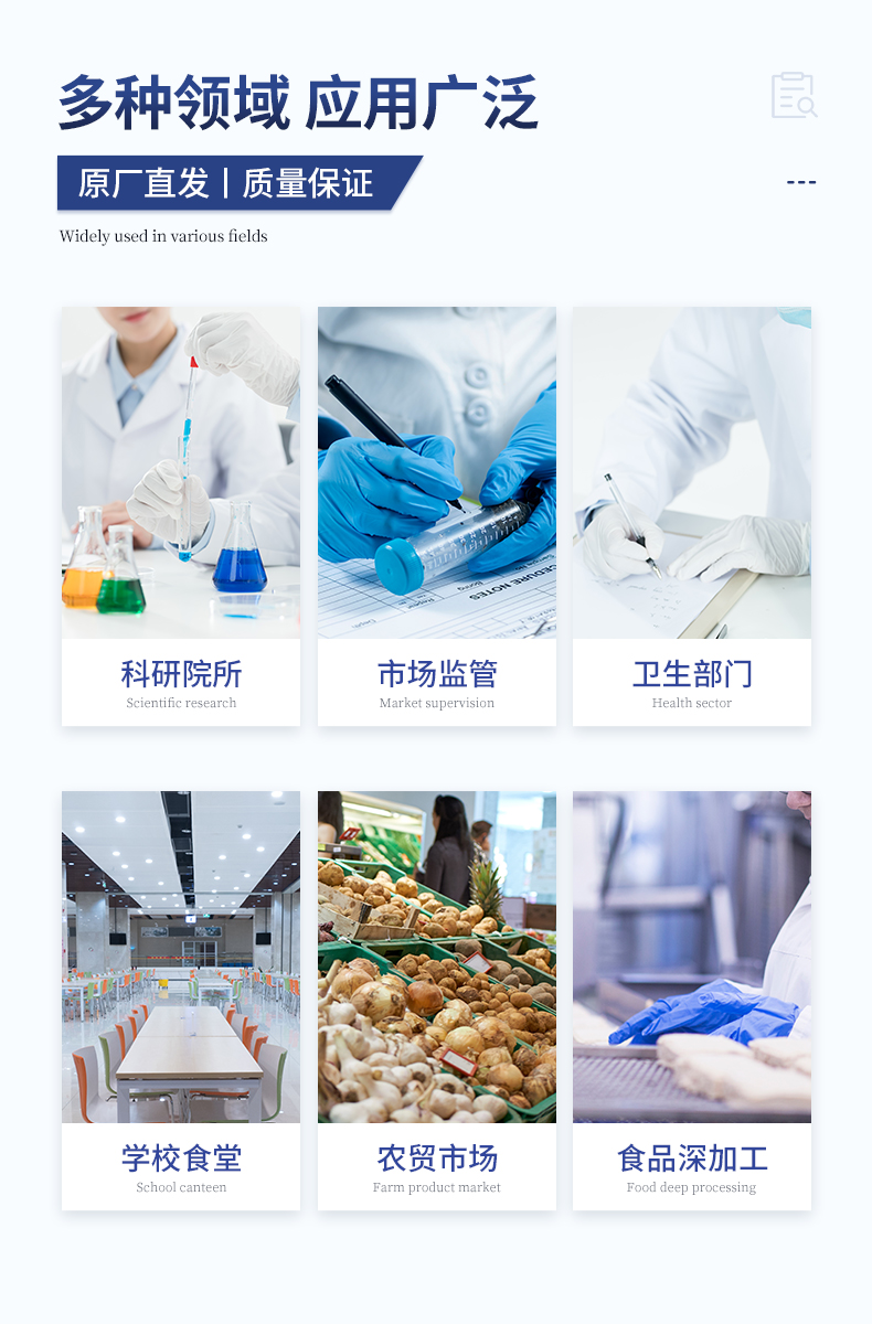 重金属检测仪可广泛应用于大米、粮谷、果品、蔬菜、药材、水质、水产品中重金属铅、镉、六价铬、汞、砷、铁、镍、铝的快速检测,检测项目可根据客户的需求定制。
