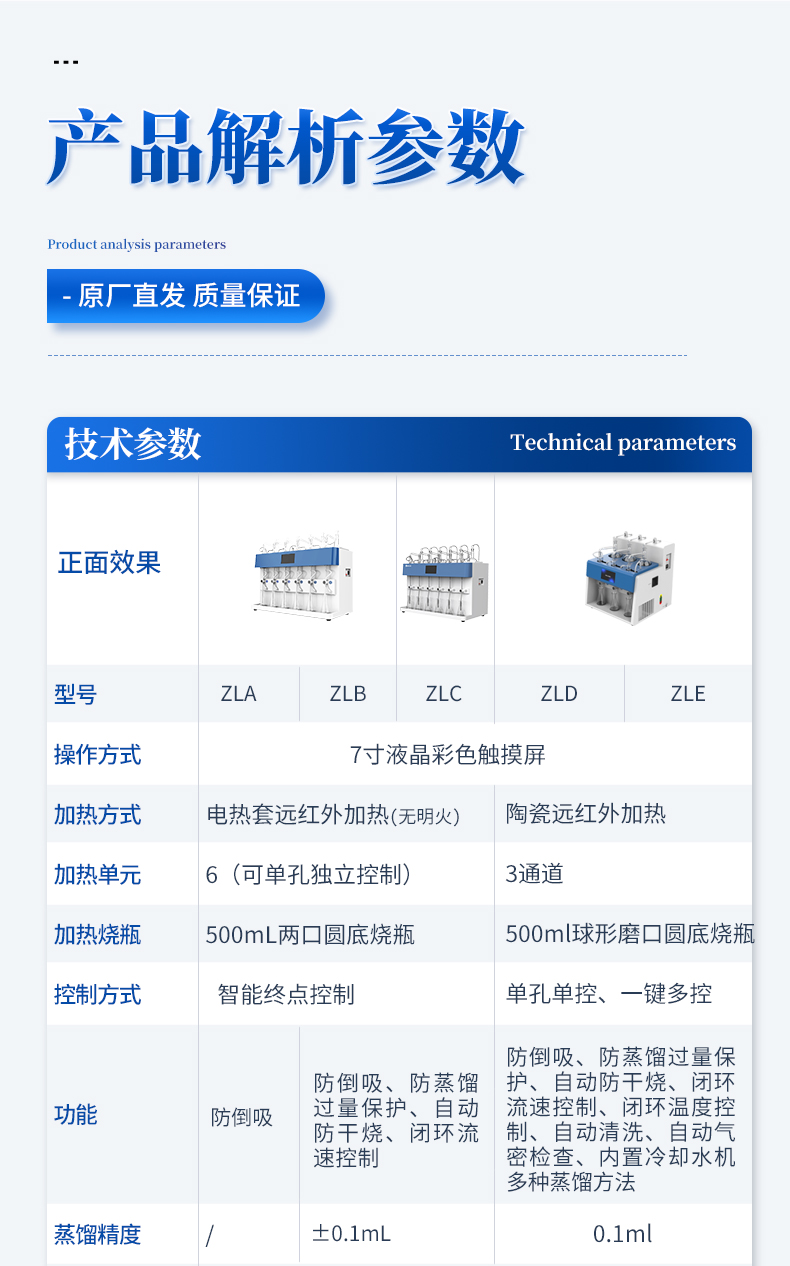 | 方法保存/读取 | 历史应用方法自动保存,自动加载 | 可保存≤1000种蒸馏方法,内置18种常用国标方法 | |