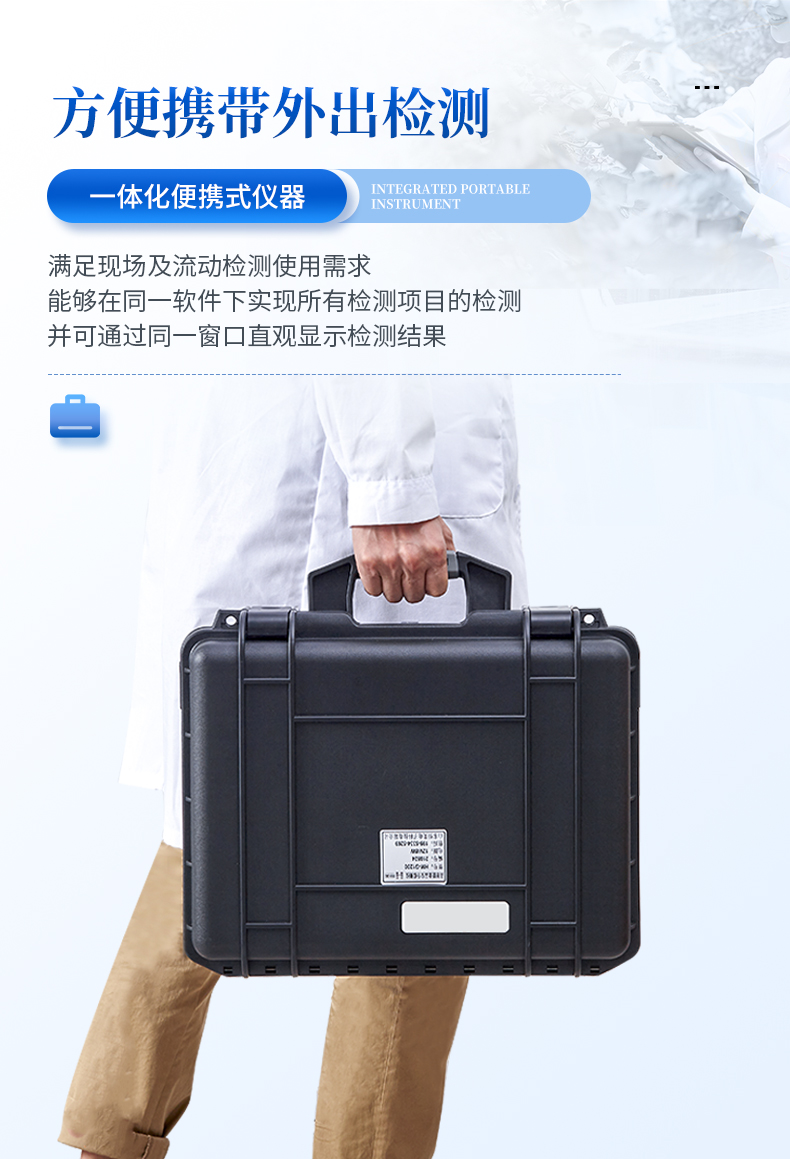6、一体化便携式快检设备,满足现场及流动检测使用需求,能够在同一软件下实现所有检测项目的检测,并可通过同一窗口直观显示检测结果。