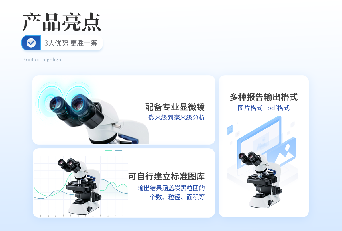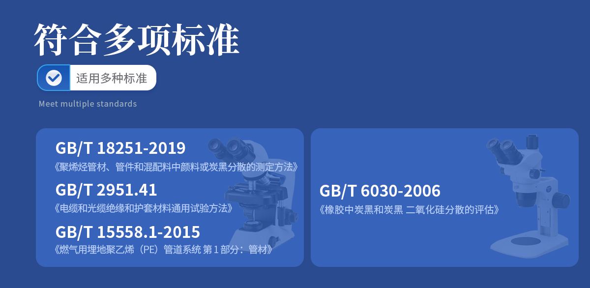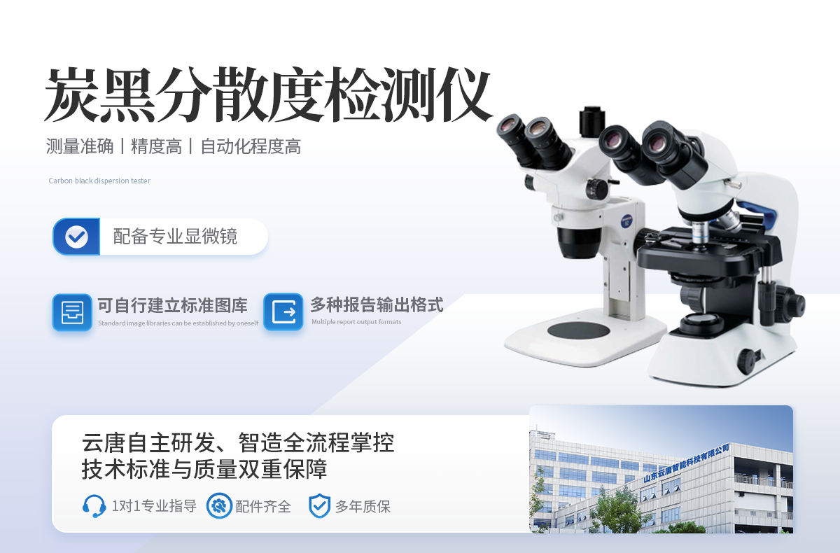 炭黑分散度检测仪根据国际标准 GB/T 18251-2000针对聚烯烃管材、管件和混配料中颜料或炭黑分散的检测仪器。该仪器适配基于软件及相应的显微镜,通过对炭黑粒团的尺度、形态、及散布情况的测量,可以建立起这些参数与力学性能、抗静电性能、吸湿性能等宏观性能指标的内在联系。对塑料材料的品质保障、生产工艺、新品研发产生积极影响,同时推进企业和行业技术水平的快速提升。