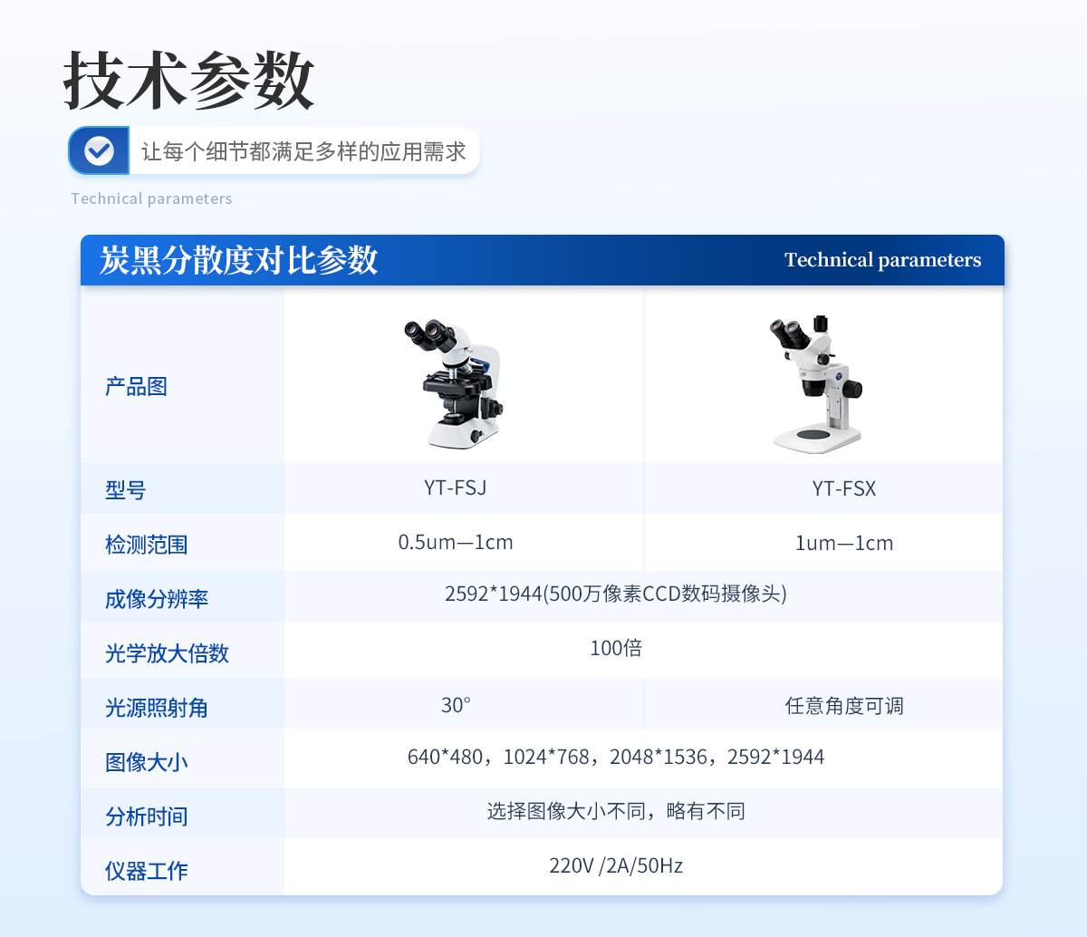 | 1、检测范围 0.5um—1cm; | 2、成像分辨率2592*1944(500万像素CCD数码摄像头); | 3、光学放大倍数 100倍 | 4、光源照射角 30°; | 5、图像大小 640*480,1024*768,2048*1536,2592*1944; | 6、分析时间 选择图像大小不同,略有不同; | 7、仪器工作电源 220V /2A/50Hz |