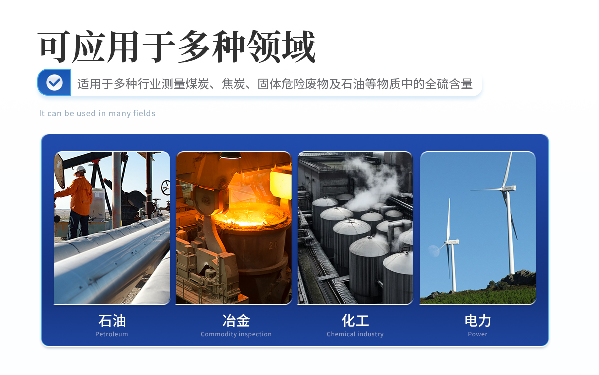 | 适用于电力、煤炭、冶金、石化、环境保护、水泥、造纸、地堪、科研院校等行业部门测量煤炭、焦炭、固体危险废物及石油等物质中的全硫含量,符合国标GB/T214-2007《煤中全硫的测定方法》。 | 无需频繁标定或校正:仪器标定后可长时间稳定,解决了同类仪器在每次开机后都需要重新标定的问题。 | 无内在振动影响:采用进口抽气泵,仪器不受抽气泵震动的影响,且噪音低。 | 具有自诊断功能,具有清晰的操作及状态提示,可进行需要的各种数据处理。 |